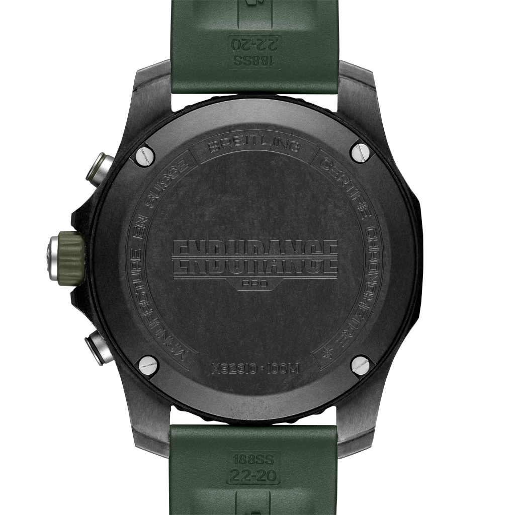 Diseñado para ser tanto reloj ligero de atleta como cronógrafo de estilo deportivo casual para estilo diario, el Endurance Pro es una mezcla perfecta de alta precisión y tecnología innovadora con diseño colorido y vitalista. Es el reloj athleisure definitivo. Diseñado para mujeres y hombres que aúnan mentalidad profesional y estilo de vida deportivo, el Endurance Pro está a la altura de los retos de un entrenamiento riguroso y tiene a la vez un estilo a la moda apto para el uso cotidiano. El Endurance Pro va alojado en una caja ultraligera de Breitlight®, material robusto 3,3 veces más ligero que el titanio y 5,8 veces más ligero que el acero inoxidable. No magnético, termoestable e hipoalergénico, Breitlight® ofrece alta resistencia a arañazos, tracción y corrosión. Presenta también un tacto más cálido que el metal, al que se añade un efecto levemente texturado que acentúa la originalidad del diseño. Es una exclusiva de Breitling y está hecho 100% en Suiza. Disponible en una gama de coloridas esferas y correas de goma a juego con una hebilla doble tipo ardillón de Breitlight®, el Endurance Pro puede combinarse asimismo con alguna de las vistosas correas monopieza de Breitling confeccionadas en hilo ECONYL® de Outerknown. En el interior del Endurance Pro late el Calibre 82 de Breitling, un cronógrafo SuperQuartz™ con certificación COSC y una precisión excepcional.